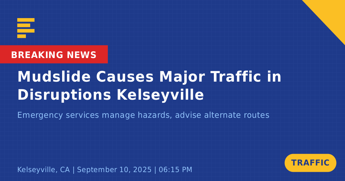 A traffic collision occurred today at the intersection of Konocti Road and Mountain Vista Estates Drive in Kelseyville, CA. The incident was reported around 6:16 PM when a single vehicle was swept off the roadway due to a mudslide, creating hazardous conditions for drivers in the area.