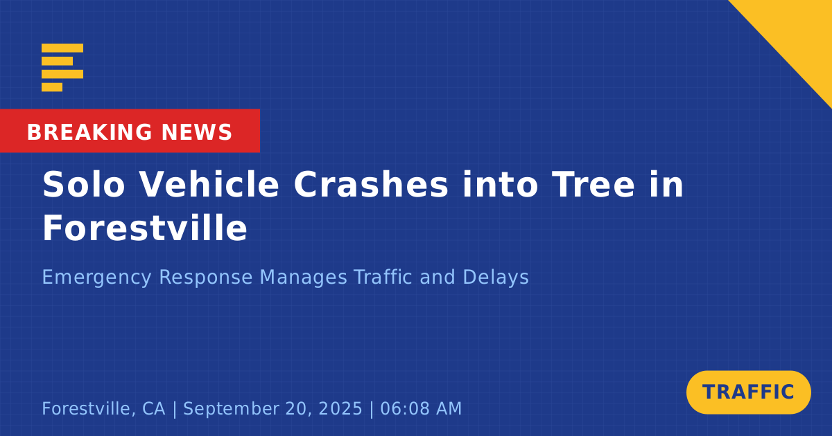 A traffic collision occurred this morning at the intersection of Covey Road and Davis Road in Forestville, CA, involving a solo vehicle that crashed into a tree. The incident was reported around 6:08 AM, prompting a swift emergency response to manage the situation.