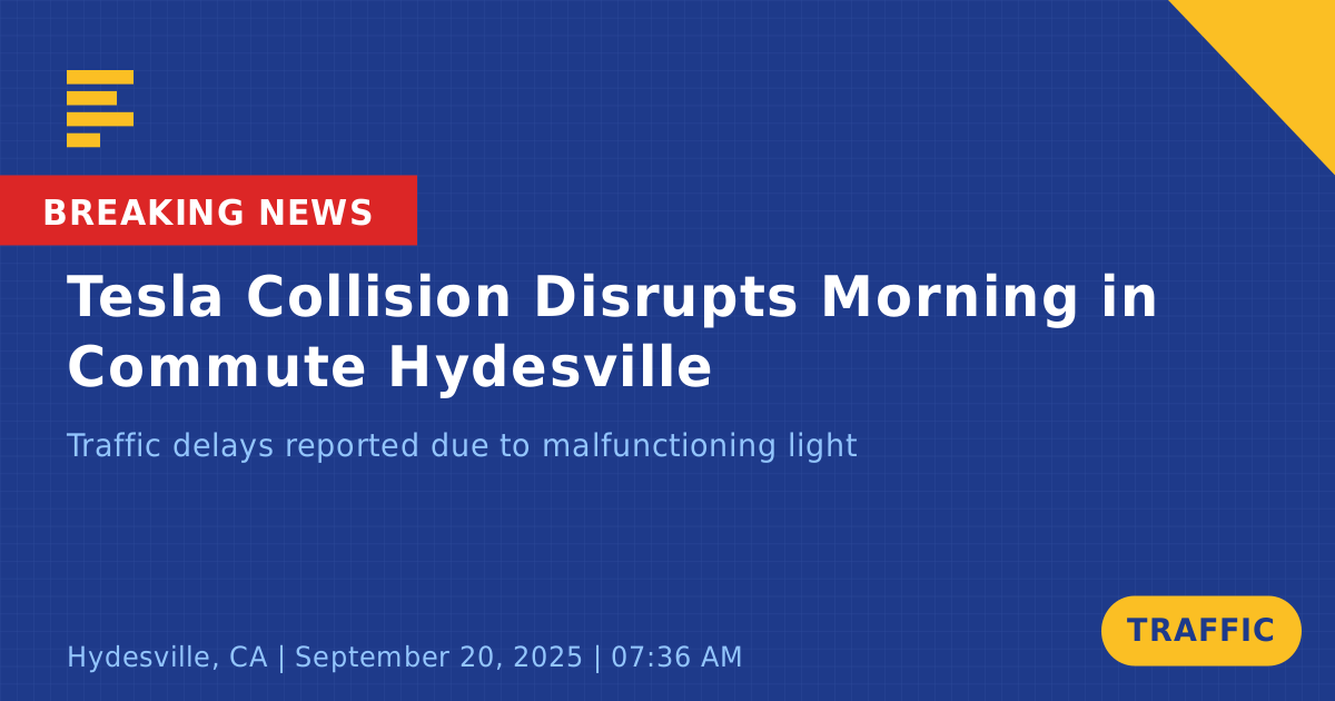 A traffic collision occurred today on State Route 36 in Hydesville, CA, causing significant disruptions during the morning commute. The incident involved one vehicle, a Tesla Model Y, which sustained damage to its front left tire after colliding with a malfunctioning stoplight.