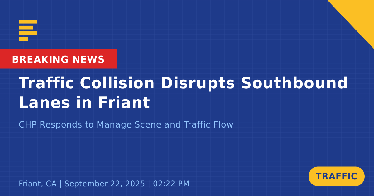 A traffic collision occurred today at the intersection of Millerton and Friant Kern Canal in Friant, CA, involving a single vehicle, a white Dodge. The incident prompted immediate emergency response from the California Highway Patrol (CHP), which arrived on the scene to manage traffic and coordinate towing services.
