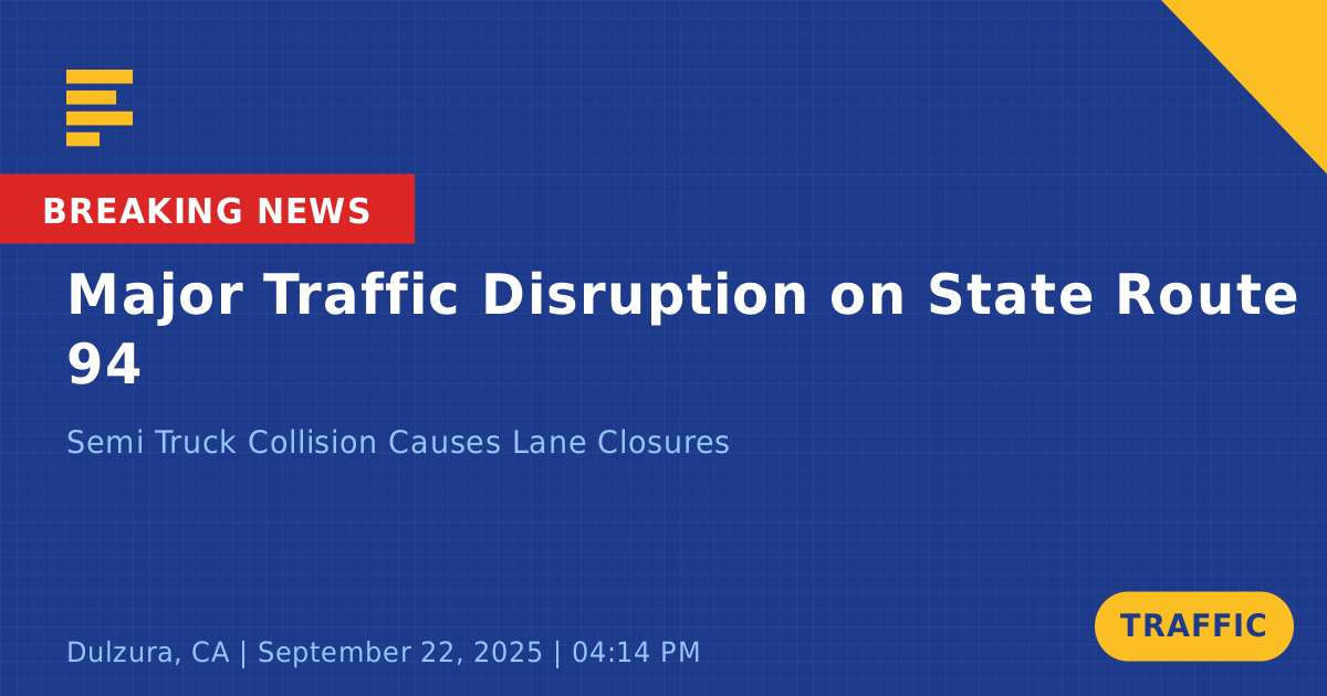 The westbound lanes of State Route 94 will remain blocked until the tow truck has cleared the scene. Emergency responders are actively managing traffic flow to minimize congestion and ensure safety for all drivers.