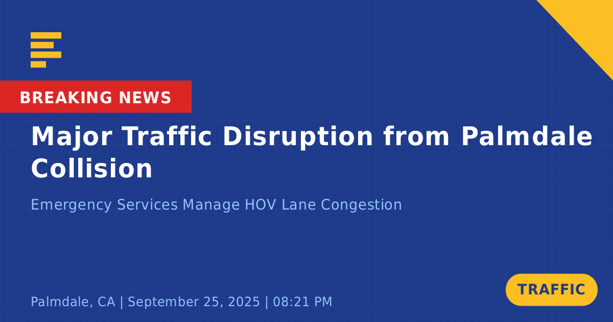 A traffic collision involving two black Honda vehicles occurred today on State Route 14 North near East Palmdale Boulevard in Palmdale, CA. The incident took place around 8:21 PM and led to significant traffic disruptions, particularly affecting the High Occupancy Vehicle (HOV) lane.