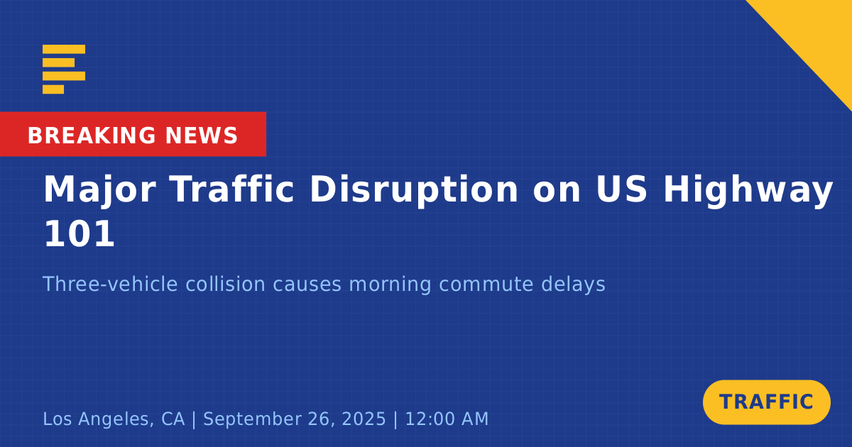 A traffic collision occurred today on US Highway 101 North near Silver Lake Boulevard in Los Angeles, CA, causing significant disruptions during the morning commute. The incident involved three vehicles: a dark-colored sedan, a silver Mercedes, and one additional vehicle of unknown description.