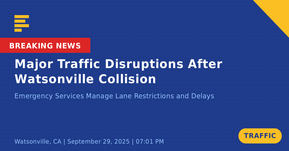 A traffic collision involving two vehicles occurred today at the intersection of Corto San Miguel and CRG12 in Watsonville, CA. The incident took place around 4:00 PM and has led to significant traffic disruptions for northbound drivers on Corto San Miguel.