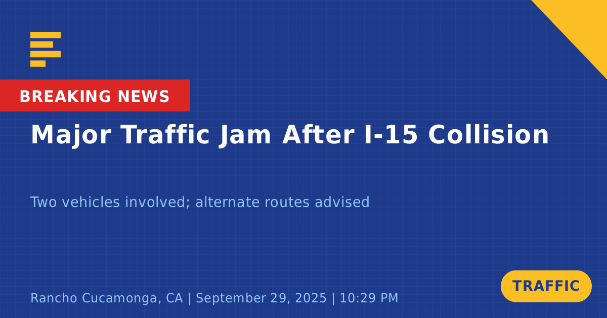 A traffic collision involving two vehicles occurred today on Interstate 15 North near Foothill Boulevard in Rancho Cucamonga, CA. The incident took place around 10:30 PM and involved a red semi-truck and a passenger vehicle, believed to be a Hyundai. The semi-truck collided with the passenger vehicle, which was partially stopped in the lanes due to narrow road conditions.