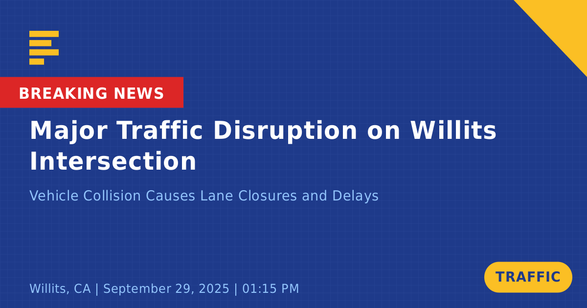 A traffic collision on Sherwood Road at the intersection with North Main Street in Willits, CA, caused significant traffic disruptions today. The incident occurred around 1:15 PM when a single vehicle left the roadway and struck a tree. Emergency services, including the California Highway Patrol and local patrol units, promptly responded to manage traffic and secure the scene.
