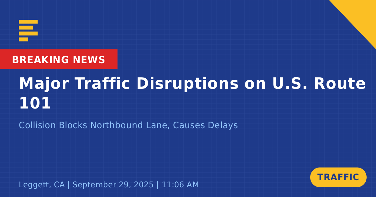 A traffic collision on U.S. Route 101 in Leggett, CA, caused significant disruptions to traffic flow today. The incident occurred around 11:06 AM, involving two vehicles, including a trailer. The collision resulted in the blockage of the northbound lane, leading to delays for drivers during the morning commute.