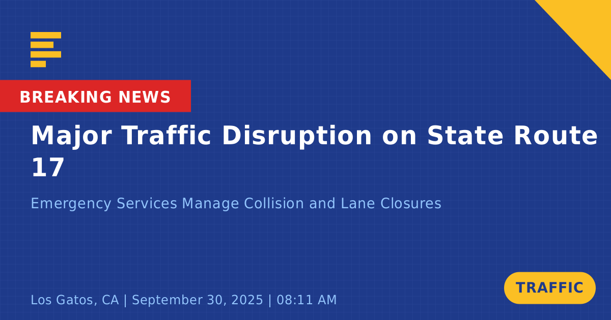 A traffic collision on State Route 17 North in Los Gatos, CA, has caused significant traffic disruptions this morning. The incident occurred around 8:12 AM when a silver Toyota Yaris lost control and struck the concrete wall.