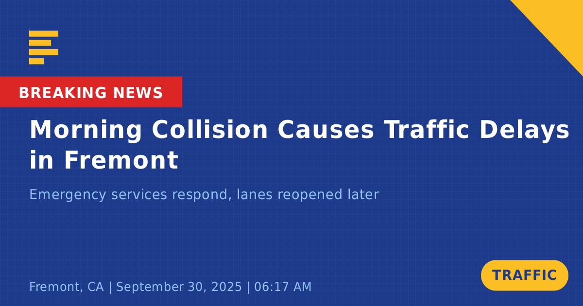 A traffic collision on State Route 84 East in Fremont, CA, caused notable traffic disruptions during the morning commute today. The incident involved two vehicles: a dark-colored older model Honda Civic and a gray Chevrolet sedan with front-end damage.
