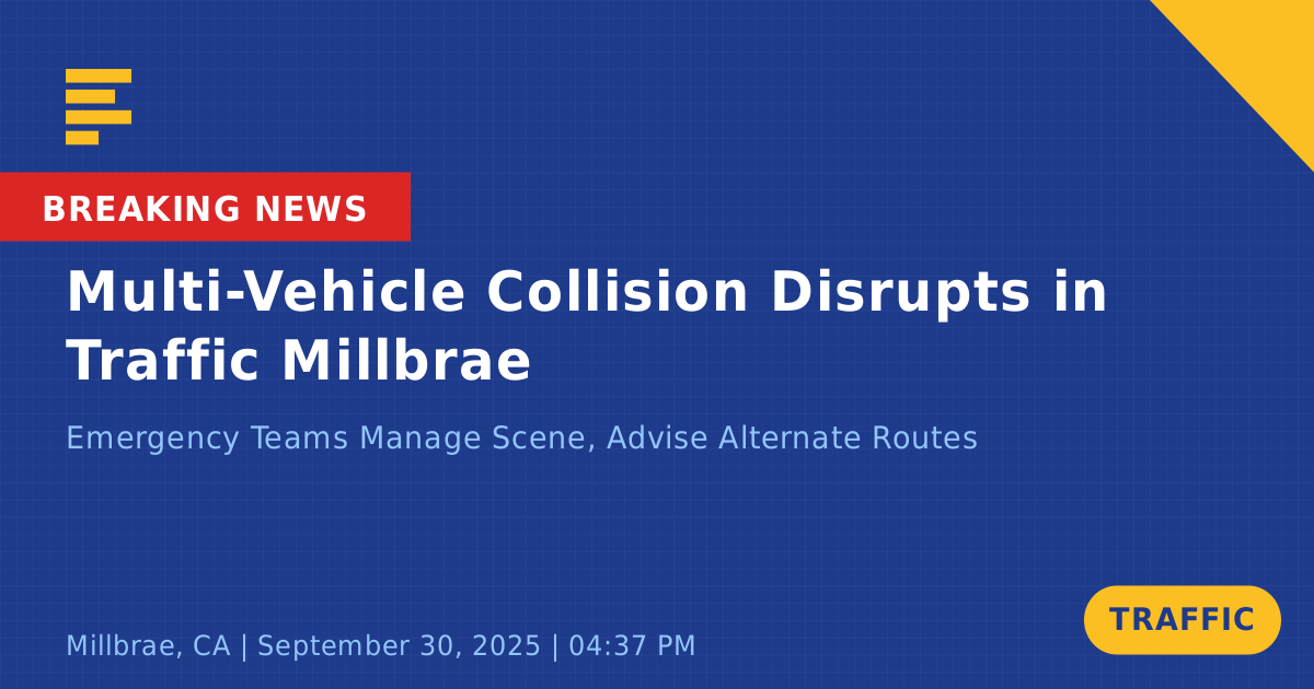 A traffic collision involving four vehicles occurred today at the off-ramp of US Highway 101 South and Millbrae Avenue in Millbrae, CA. The incident took place during the late afternoon, leading to significant traffic disruptions in the area.