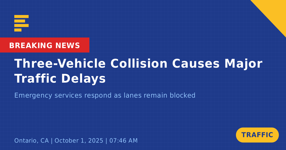 A traffic collision involving three vehicles occurred today on Interstate 10 East near Euclid Avenue in Ontario, CA. The incident took place around 7:50 AM during the busy morning commute, involving a white Toyota Prius, a black Tesla, and a gray Nissan.