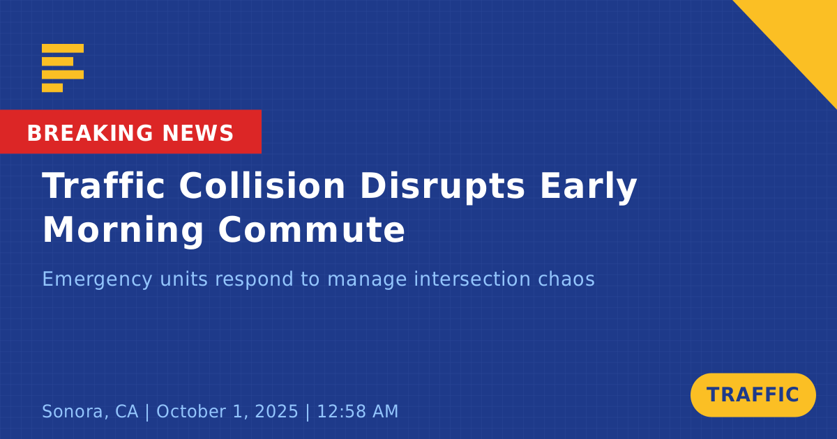 A traffic collision involving two vehicles occurred today at the intersection of Sawmill Flat Road and Red Gulch Road in Sonora, CA. The incident was reported shortly after midnight, around 12:58 AM, when witnesses heard the crash. A red two-door sedan was involved, which reportedly spun out and collided with a fence, sustaining visible damage. The other vehicle involved remains of unknown description.