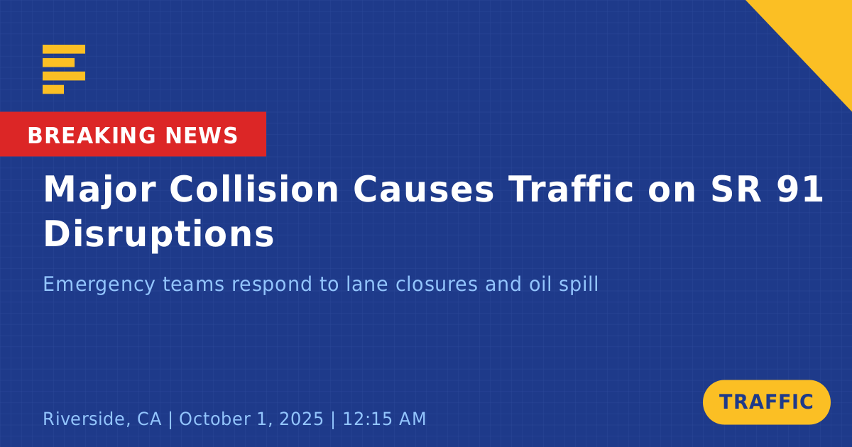 A traffic collision on State Route 91 West near La Sierra Avenue in Riverside, CA, caused significant traffic disruptions today. The incident involved three vehicles: a white Ford F150 Raptor, a Toyota Matrix, and a white or silver Toyota Prius. The collision resulted in oil spilling onto the roadway, leading to the closure of one lane and necessitating traffic management to ensure safety.