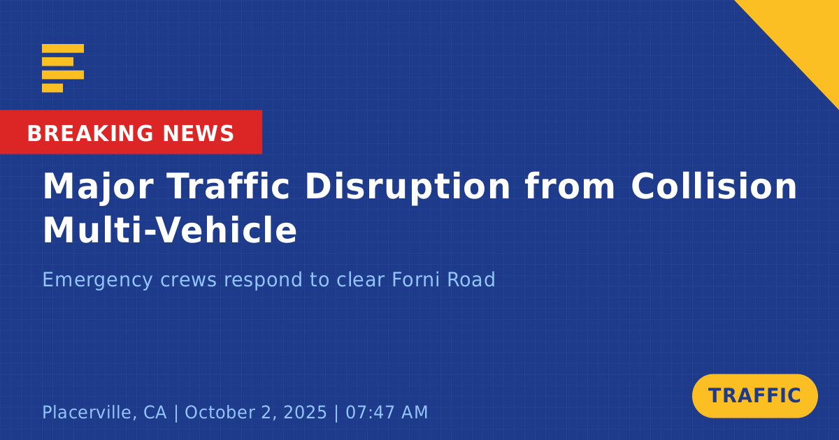 A traffic collision involving three vehicles occurred this morning at the intersection of Forni Road and Blanchard Road in Placerville, CA. The incident took place around 7:51 AM, involving a white SUV, a green SUV, and a silver SUV. The green SUV was blocking the northbound lanes, which led to significant traffic disruptions during the busy morning commute.