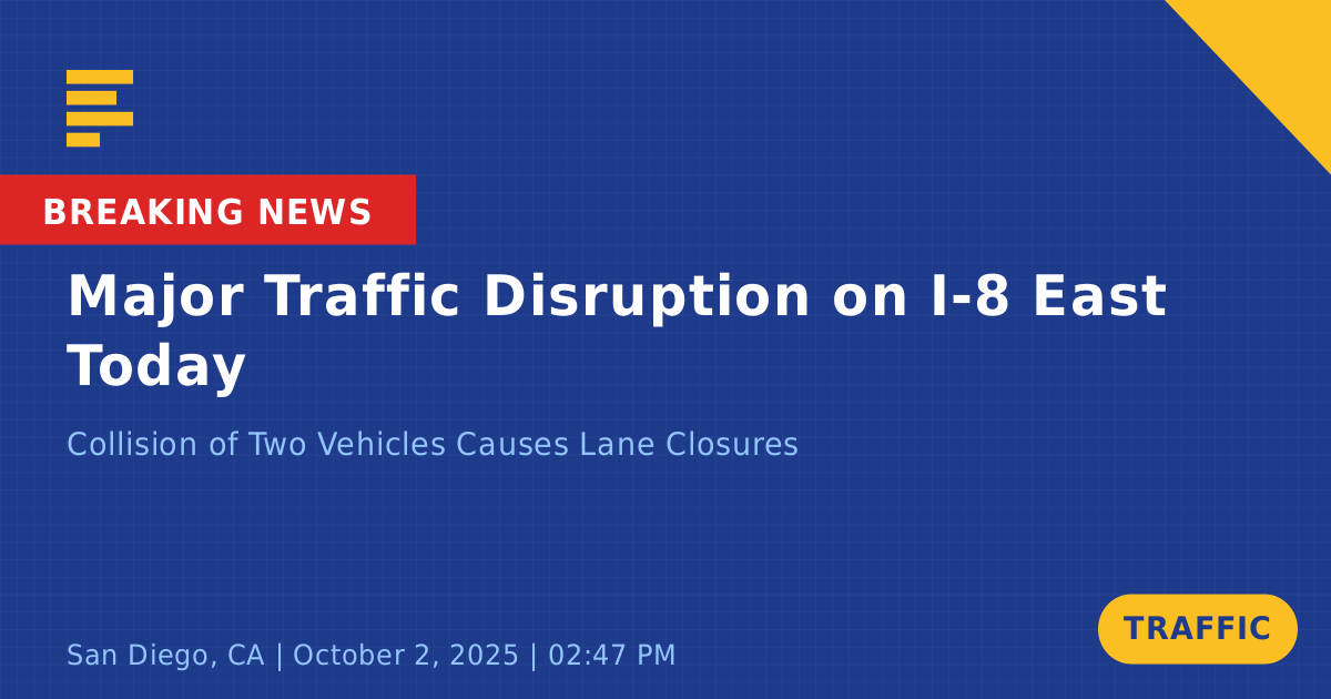 A traffic collision occurred today on Interstate 8 East near State Route 163 in San Diego, CA, causing significant disruptions to traffic flow. The incident involved two vehicles: a white Mazda CX5 and a white Tesla. The collision was reported at approximately 2:48 PM, with the Mazda initially blocking the middle lanes, which led to lane closures and affected the movement of vehicles in the area.