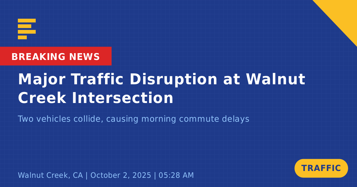 A traffic collision involving two vehicles occurred today at the intersection of State Route 24 East and Interstate 680 South in Walnut Creek, CA. The incident was reported around 5:27 AM, during the busy morning commute, causing significant traffic disruptions.