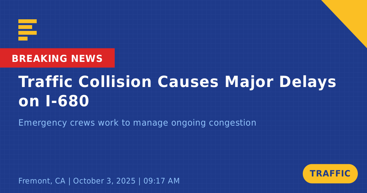 A traffic collision involving two vehicles occurred today on Interstate 680 South in Fremont, CA, leading to significant traffic disruptions during the morning commute. The incident involved a white truck and a white semi-truck, with the box truck ending up approximately 20 feet down an embankment after losing control.