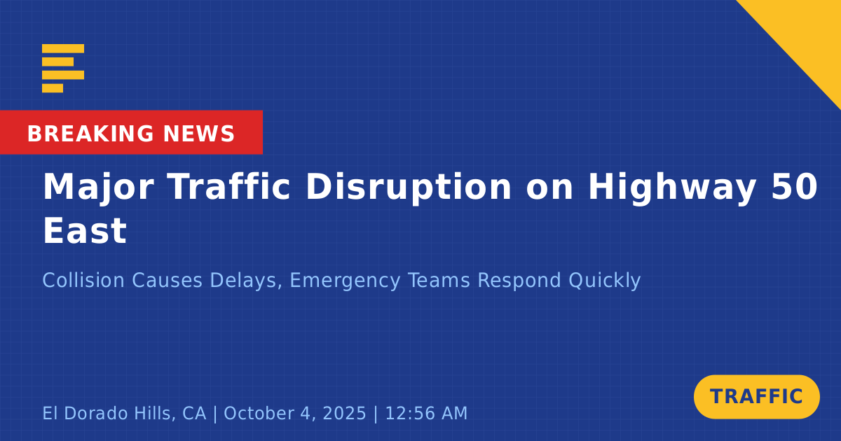 A traffic collision occurred today on U.S. Highway 50 East at the White Rock Road off-ramp in El Dorado Hills, CA. The incident involved two vehicles, including a black solo vehicle that caught fire after the crash. Emergency response teams quickly arrived to manage the situation and secure the area.