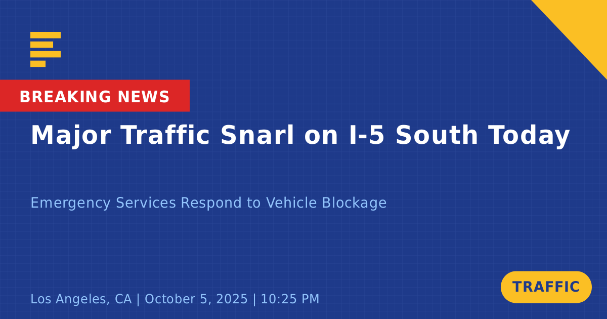 A traffic collision on Interstate 5 South (I-5 S) in Los Angeles, CA, caused significant traffic disruptions today. The incident occurred around 10:26 PM when a single white vehicle became inoperable, blocking lanes 1 and 3. This obstruction led to lane closures and prompted emergency services to implement controlled traffic flow in the area.