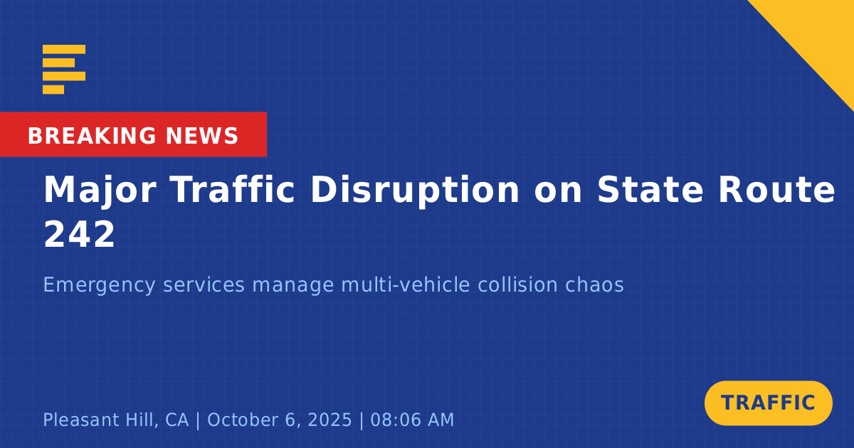 A traffic collision on State Route 242 South in Pleasant Hill, CA, caused significant disruptions during the morning commute today. The incident involved two vehicles: a white Promaster Ram box truck and a red Acura.