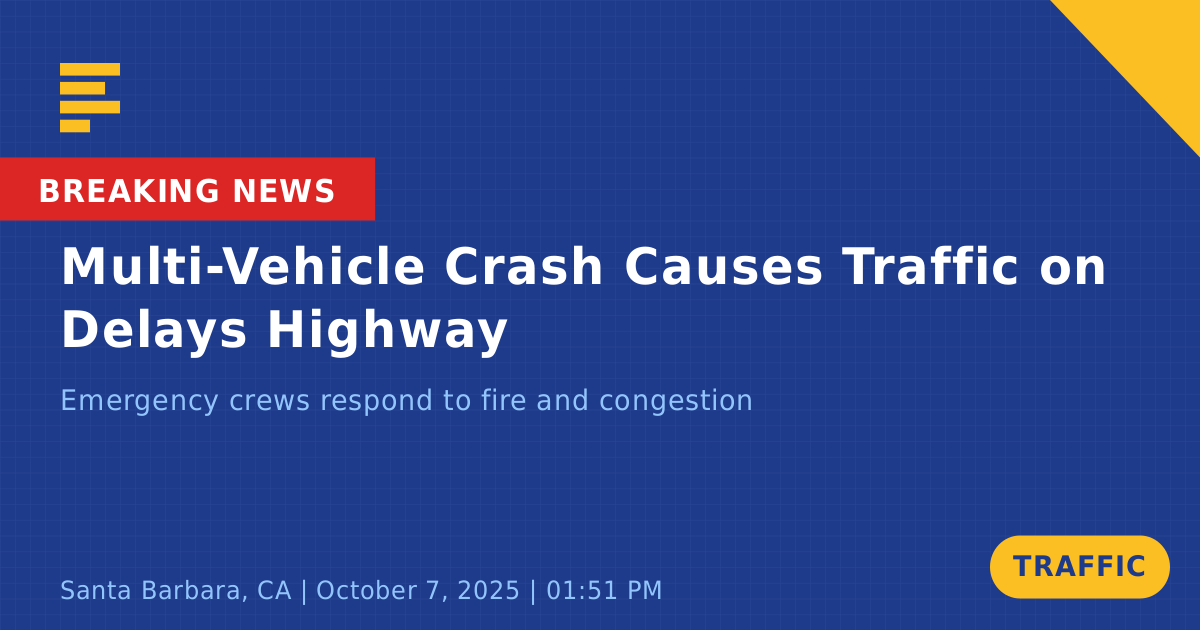 A traffic collision involving five vehicles occurred today on the northbound lanes of U.S. Highway 101 near the State Route 154 off-ramp in Santa Barbara, CA. The incident was reported at approximately 1:51 PM and included a white Honda Civic and a gray Honda among the vehicles involved. One vehicle was noted to be on fire, prompting an immediate emergency response.