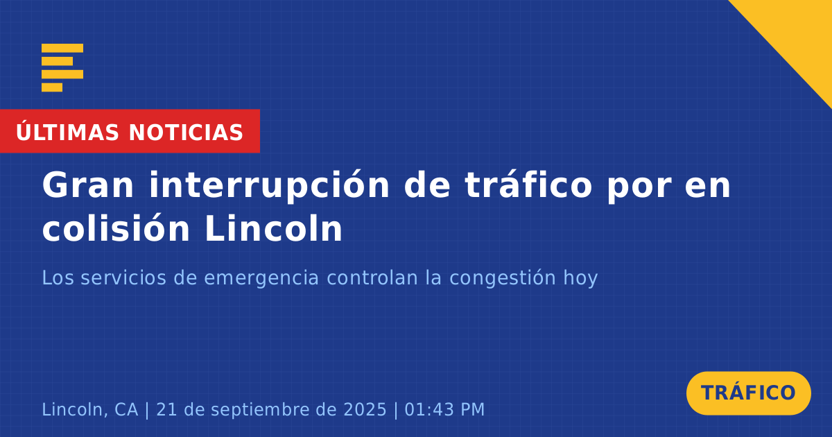 Un accidente de tráfico que involucró a dos vehículos ocurrió hoy en la intersección de Sierra College Boulevard y Twelve Bridges Drive en Lincoln, CA. El incidente fue reportado alrededor de la 1:54 PM, lo que provocó importantes interrupciones en el tráfico en la zona. Un vehículo estaba filtrando líquido, lo que llevó a una revisión por parte del departamento de bomberos antes de que pudiera ser remolcado, mientras que el otro vehículo parecía estar varado.