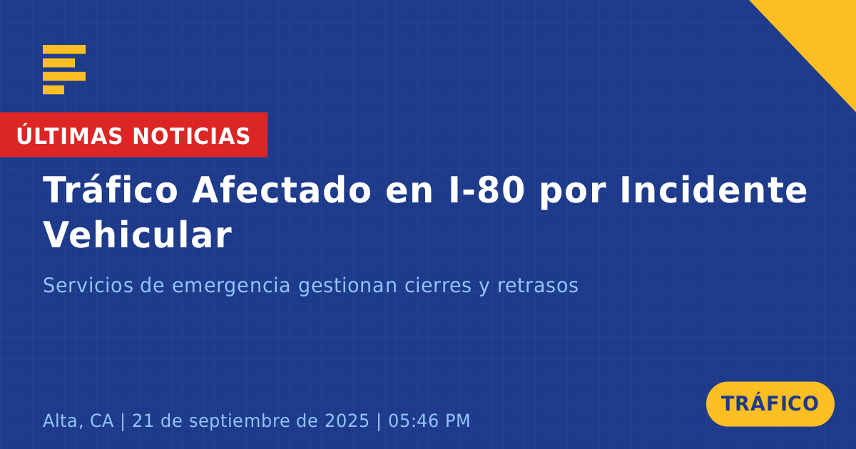 Se aconseja a los conductores que viajan por la Interestatal 80 Este cerca de Dutch Flat Road que ejerzan precaución y estén preparados para posibles desaceleraciones mientras las autoridades trabajan para despejar la escena. Se alienta a los viajeros a buscar rutas alternativas si es posible para evitar el área afectada.
