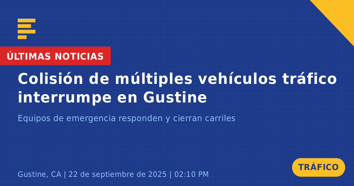 Un accidente de tráfico ocurrió hoy en la Ruta Estatal 152 / Moraga Road en Gustine, CA, involucrando cuatro vehículos: un Toyota gris, un camión de carga, un camión de basura y un sedán de lujo. El incidente fue reportado alrededor de las 2:11 PM y resultó en el cierre de carriles en dirección este, causando posibles retrasos para los conductores en la zona.