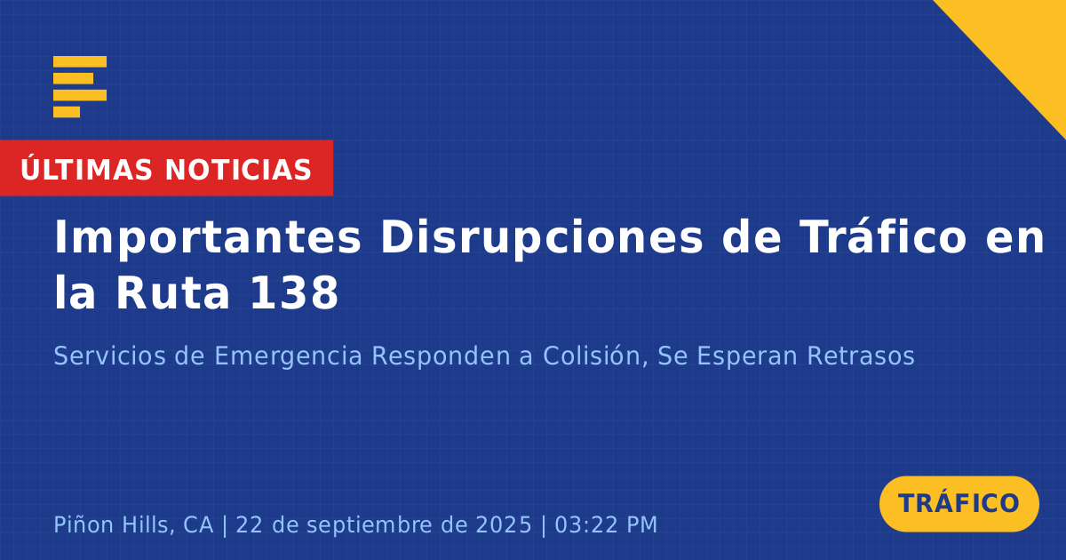 Los automovilistas que viajan a través de Piñon Hills en la Ruta Estatal 138 deben anticipar retrasos y considerar rutas alternativas si es posible. La Patrulla de Carreteras de California está en el lugar para ayudar con la gestión del tráfico y despejar la escena del incidente de tráfico.