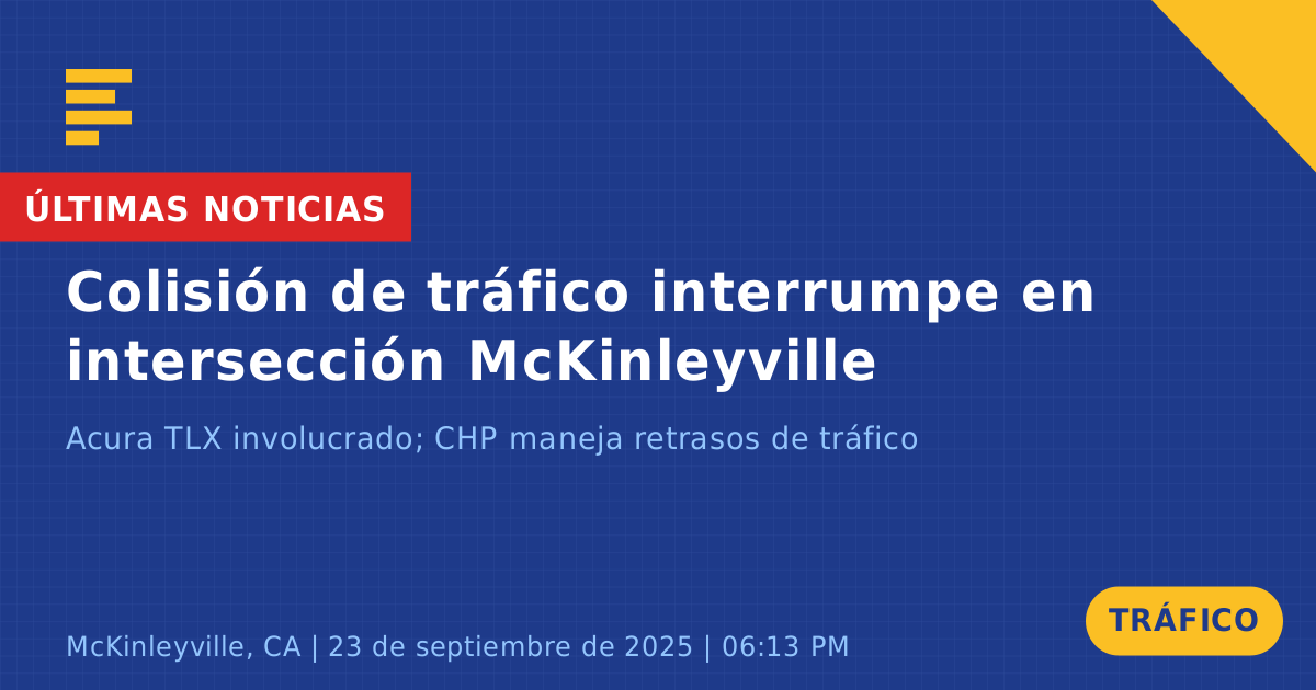 Un accidente de tráfico ocurrió hoy en la intersección de Azalea Avenue y East Cochran Road en McKinleyville, CA, involucrando un solo vehículo, un Acura TLX. El incidente fue reportado aproximadamente a las 6:14 PM, cuando el vehículo terminó fuera de la carretera en una zanja, lo que provocó una respuesta inmediata de la Patrulla de Carreteras de California (CHP).