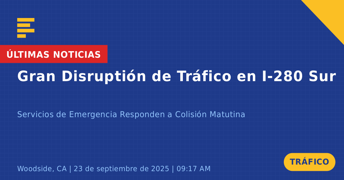 Una colisión de tráfico en la Interestatal 280 Sur en Woodside, CA, causó importantes interrupciones en el flujo de tráfico hoy durante la hora pico de la mañana. El incidente involucró a dos vehículos, incluyendo un sedán azul que sufrió daños considerables en el parabrisas. En el momento de la colisión, uno o más vehículos aún estaban en funcionamiento.