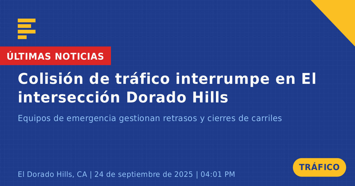 Un accidente de tráfico ocurrió hoy en la intersección de Green Valley Road y Salmon Falls Road en El Dorado Hills, CA, lo que llevó a importantes esfuerzos de gestión del tráfico. El incidente, que involucró un vehículo, fue reportado alrededor de las 4:02 PM, cuando el vehículo se salió de la carretera y chocó contra un letrero de cemento, terminando en un área boscosa.