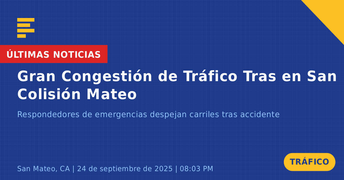 Un accidente de tráfico ocurrió hoy en la Ruta Estatal 92 Oeste en la intersección con la Autopista 101 Sur en San Mateo, CA, causando importantes interrupciones en el tráfico. El incidente involucró a dos vehículos: un Toyota Camry plateado y un vehículo identificado como un sedán Lexus plateado o un Tesla blanco.