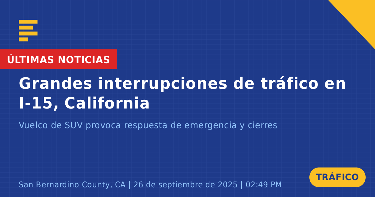 Se aconseja a los conductores que viajan por el condado de San Bernardino que ejerzan precaución y esperen posibles retrasos mientras se gestiona la secuela del incidente de tráfico. Mantenerse informado sobre las condiciones del tráfico es esencial al navegar por carreteras importantes como la Interestatal 15.