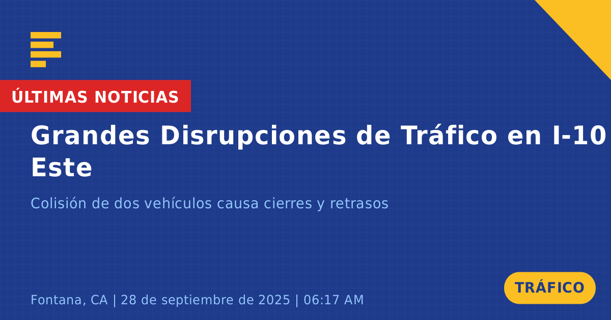 Una colisión de tráfico en la Interestatal 10 Este en Fontana, CA, ha causado importantes interrupciones en el tráfico esta mañana. El incidente, que ocurrió alrededor de las 6:18 AM, involucró a dos vehículos, incluido un sedán blanco que perdió el control y chocó contra la pared de concreto.