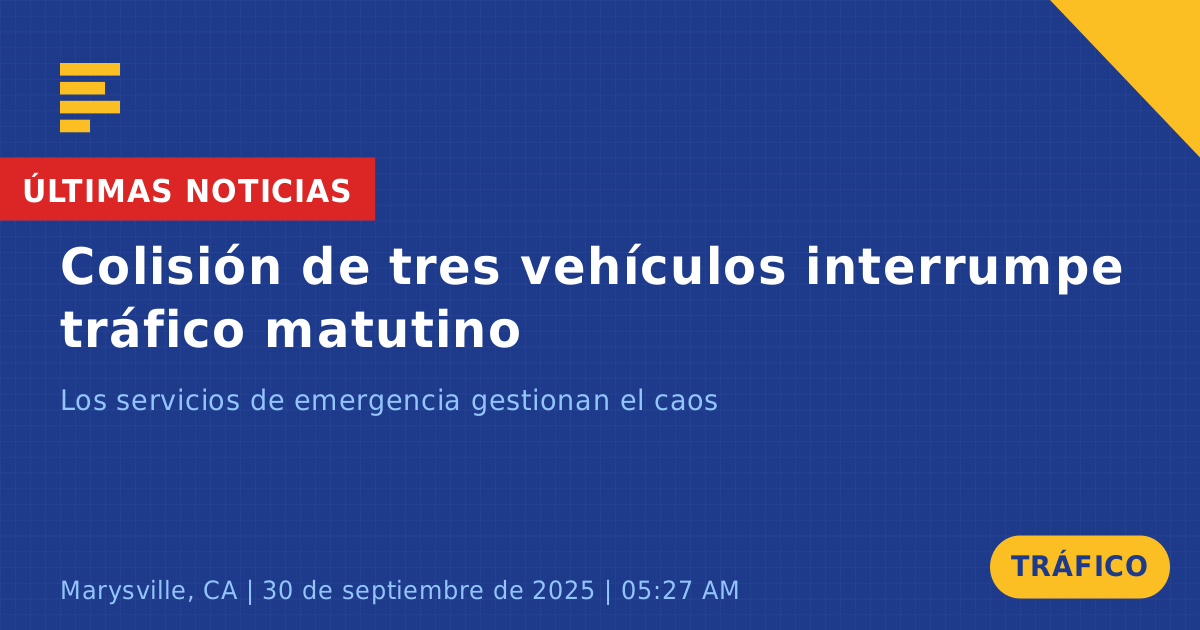 Una colisión de tráfico que involucró a tres vehículos ocurrió esta mañana en la intersección de Erle Road y Lindhurst Avenue en Marysville, CA. El incidente fue reportado aproximadamente a las 5:27 AM, lo que llevó a una rápida respuesta de las unidades de emergencia para gestionar la situación.