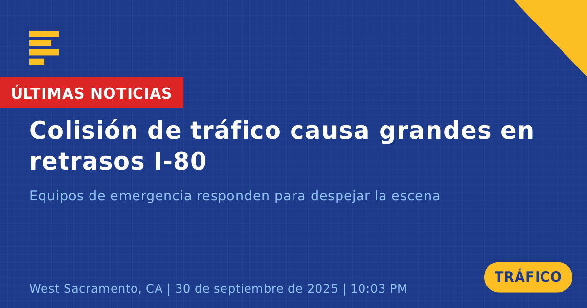 Un choque de tráfico que involucró a dos vehículos ocurrió hoy en la Interestatal 80 Este cerca de Jwo Enterprise Boulevard en West Sacramento, CA. El incidente involucró a un Mazda y una Ford F350 roja, lo que resultó en interrupciones significativas del tráfico durante las horas de la tarde.
