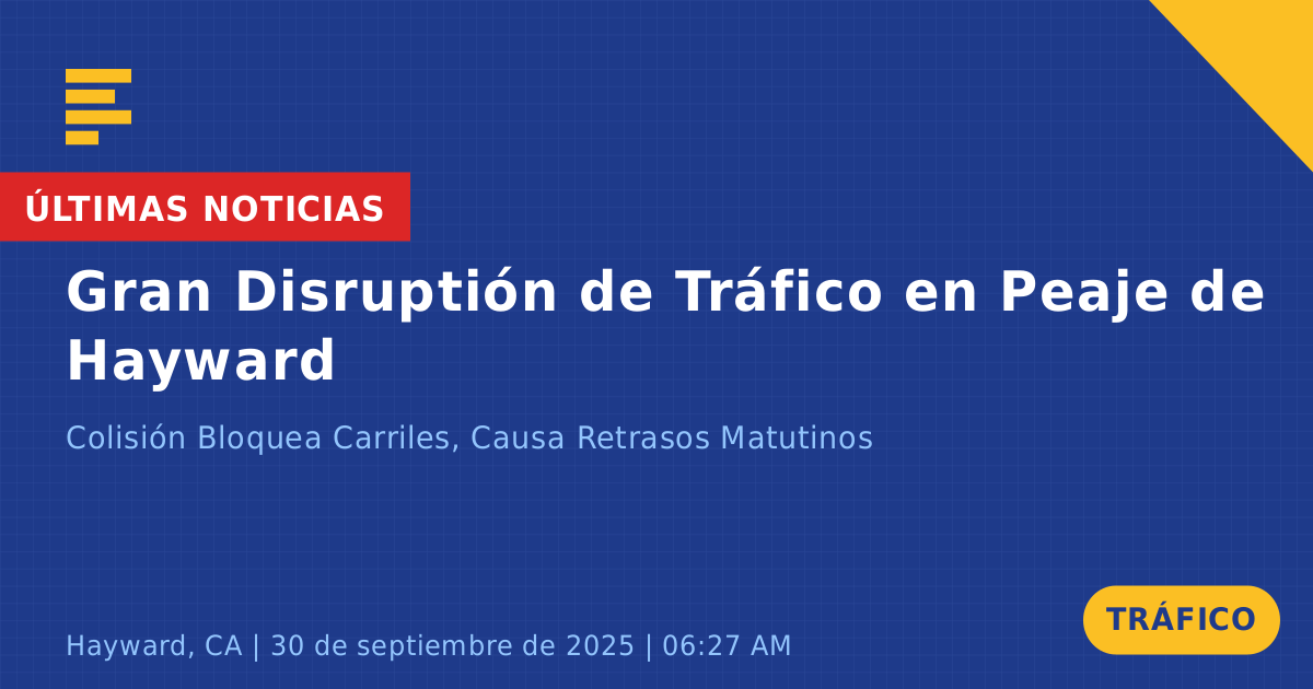 Un accidente de tráfico que involucró a dos vehículos ocurrió hoy en la plaza de peaje de la Ruta Estatal 92 Oeste en Hayward, CA. El incidente tuvo lugar alrededor de las 6:28 AM durante la concurrida hora pico de la mañana, involucrando a una SUV roja y un Toyota Cam blanco. La colisión provocó interrupciones significativas en el tráfico, con los carriles del medio y derecho bloqueados, lo que resultó en retrasos para los conductores que se acercaban a la plaza de peaje.