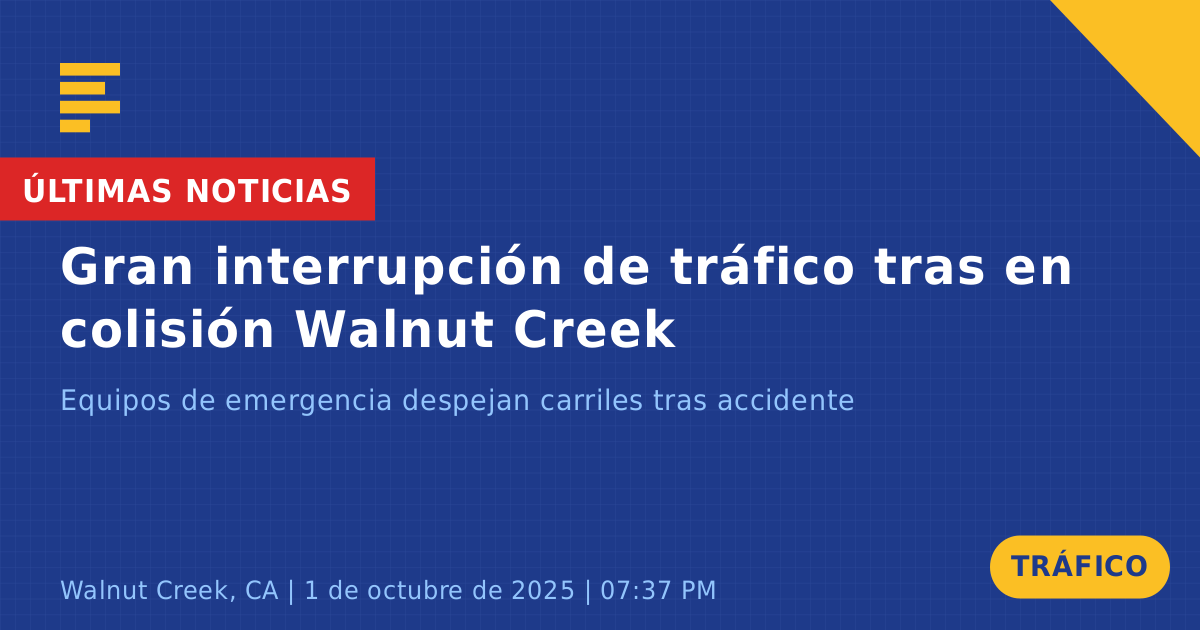 Un accidente de tráfico que involucró a dos vehículos ocurrió hoy en el intercambio de la Ruta 680 Sur y la Ruta Estatal 24 Oeste en Walnut Creek, CA. El incidente fue reportado alrededor de las 7:38 PM e involucró a un Toyota Cam verde y otro vehículo no identificado. Como resultado de la colisión, todos los carriles fueron bloqueados temporalmente, lo que provocó una congestión significativa y retrasos para los conductores de la tarde.