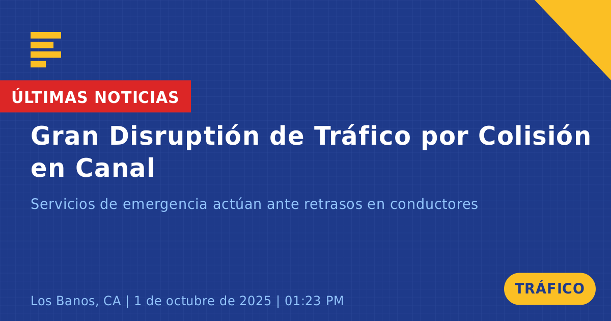 Una colisión de tráfico en Volta Road y Pioneer Road en Los Banos, CA, ha causado importantes interrupciones en el tráfico hoy. El incidente ocurrió alrededor de la 1:25 PM cuando se informó que un vehículo había entrado parcialmente en un canal, con dos de sus llantas sumergidas en el agua. Los servicios de emergencia, incluidos múltiples equipos de gestión del tráfico, respondieron rápidamente a la escena para manejar la situación.