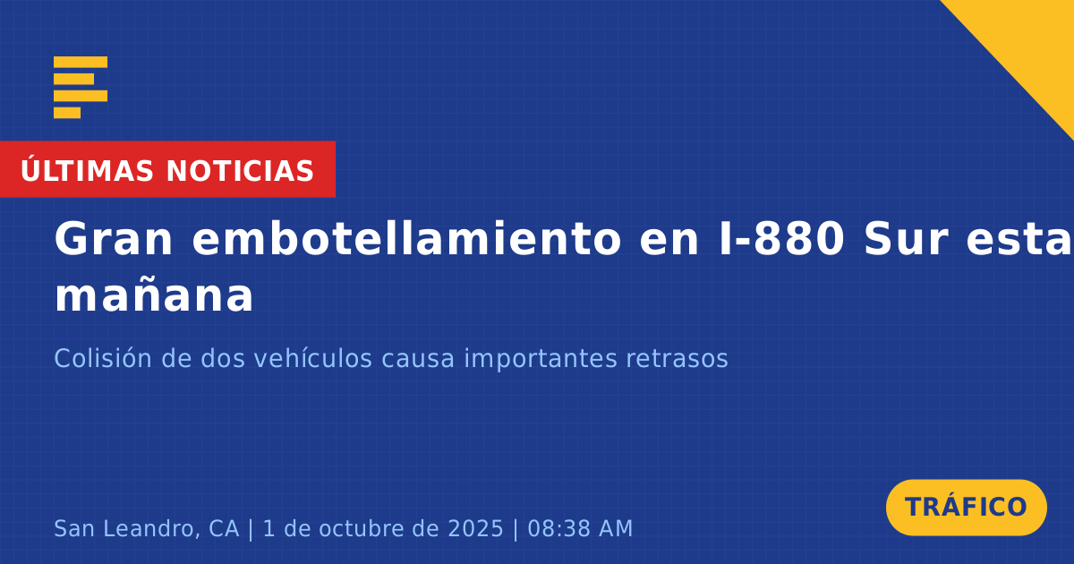 Una colisión de tráfico en la Interestatal 880 Sur en San Leandro, CA, causó importantes interrupciones durante la hora pico de la mañana hoy. El incidente, que involucró a dos vehículos—un sedán blanco con techo negro y un Subaru Crosstrek blanco—ocurrió alrededor de las 8:37 AM. Como resultado de la colisión, se bloquearon dos carriles, lo que provocó retrasos y congestión para los conductores en las cercanías.