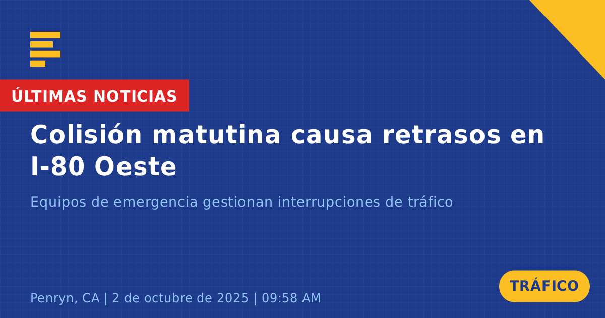 Un choque de tráfico que involucró a dos vehículos ocurrió hoy en la Interestatal 80 Oeste cerca de la entrada de Penryn Road en Penryn, CA. El incidente tuvo lugar alrededor de las 9:58 AM durante la concurrida hora de la mañana, e involucró a una furgoneta de trabajo blanca y a un SUV Jeep dorado.