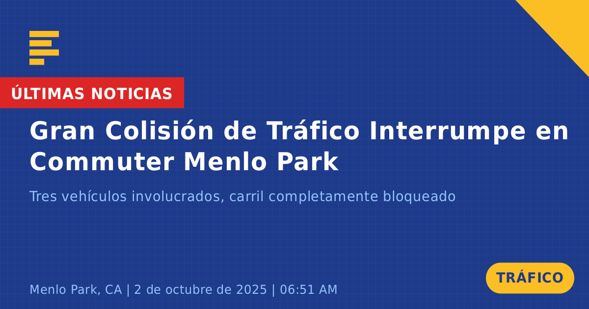Un importante choque de tráfico ocurrió hoy en la Ruta Estatal 84 Este en Menlo Park, CA, lo que resultó en grandes interrupciones del tráfico durante la hora pico de la mañana. El incidente involucró tres vehículos: un SUV azul, un sedán gris y otro vehículo que impactó el divisor central. Esta colisión llevó al bloqueo total del carril #1, causando un desbordamiento en los carriles adyacentes y creando considerables retrasos en el tráfico.