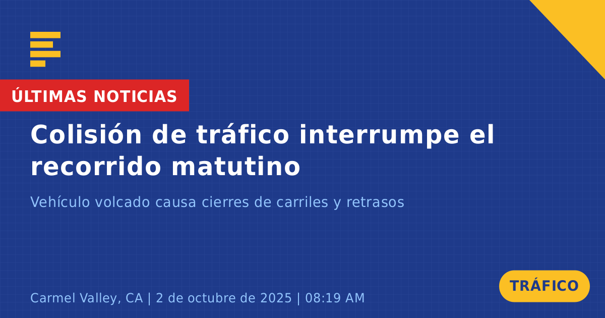 Esta colisión de tráfico resalta la importancia de conducir con cuidado en condiciones climáticas adversas. Esté atento a las actualizaciones sobre las condiciones del tráfico y la seguridad vial en Carmel Valley, CA.