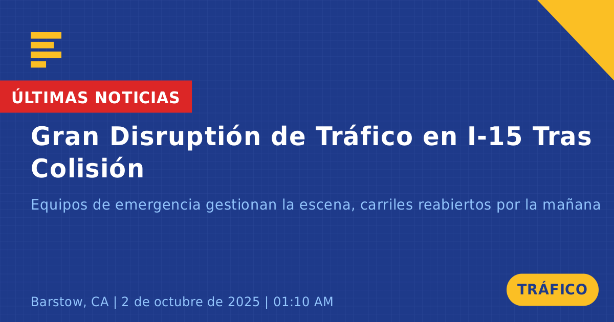 Este incidente de tráfico resalta la importancia de la vigilancia de los conductores en la carretera, especialmente durante las primeras horas de la mañana cuando la visibilidad puede ser reducida. Para obtener las últimas actualizaciones sobre las condiciones del tráfico en Barstow, CA, se recomiendan las fuentes de noticias locales.