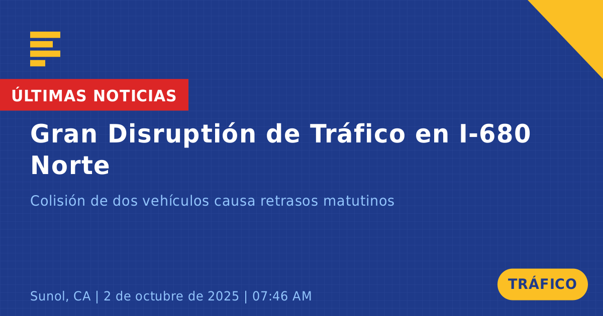 Los automovilistas que viajan por la Interestatal 680 Norte pueden esperar retrasos y congestión mientras los respondedores de emergencia trabajan para despejar la escena. El bloqueo ha llevado a acumulaciones, afectando el flujo de tráfico en la zona. Se aconseja a los conductores que busquen rutas alternativas si es posible para evitar más retrasos.