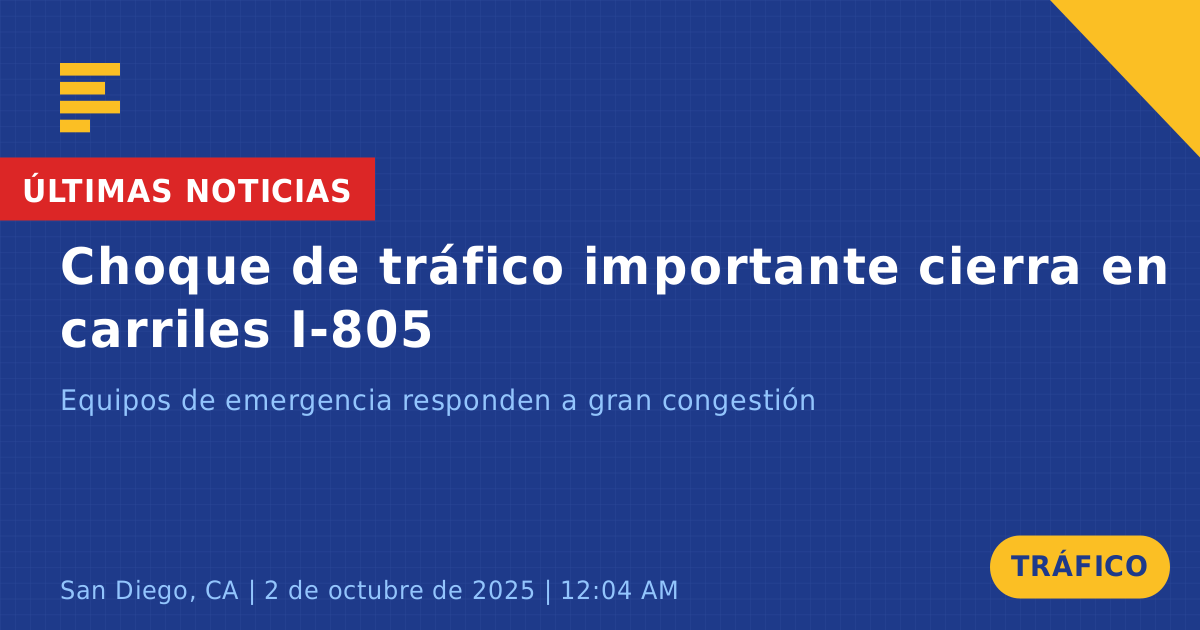 Se aconseja a los automovilistas buscar rutas alternativas y esperar retrasos significativos si viajan por esta sección de la Interestatal 805 Sur. La situación está en curso y se proporcionarán actualizaciones a medida que se despeje la escena y se reanuden los patrones de tráfico normales.