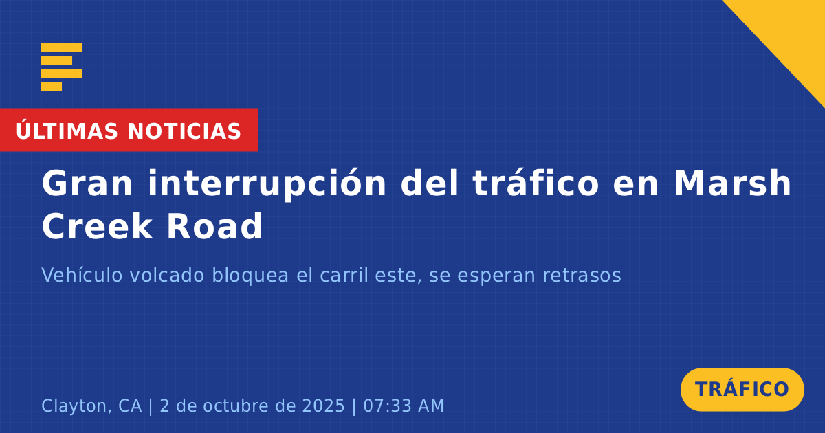 Los conductores son alentados a buscar rutas alternativas para evitar el incidente de tráfico en Marsh Creek Road en Clayton, CA, para asegurar un viaje más fluido durante este ocupado período de la mañana.