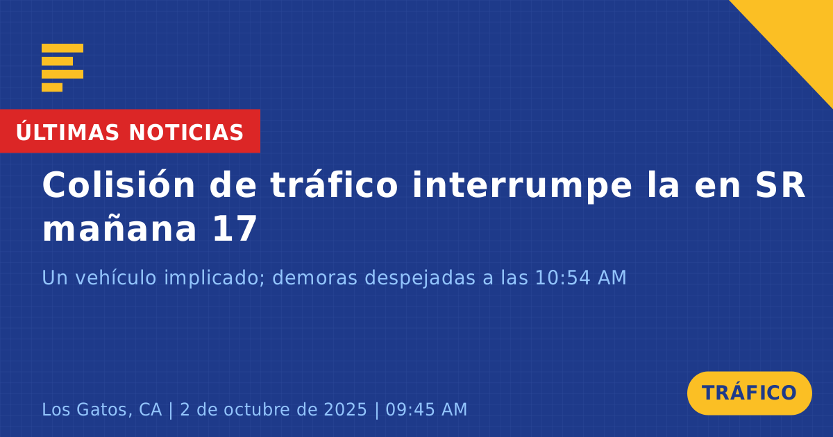 Una colisión de tráfico en la Ruta Estatal 17 Norte en Los Gatos, CA, causó notables interrupciones en el tráfico durante la hora pico de la mañana hoy. El incidente involucró un vehículo, un Toyota Prius azul, que chocó contra la barrera del lado derecho.