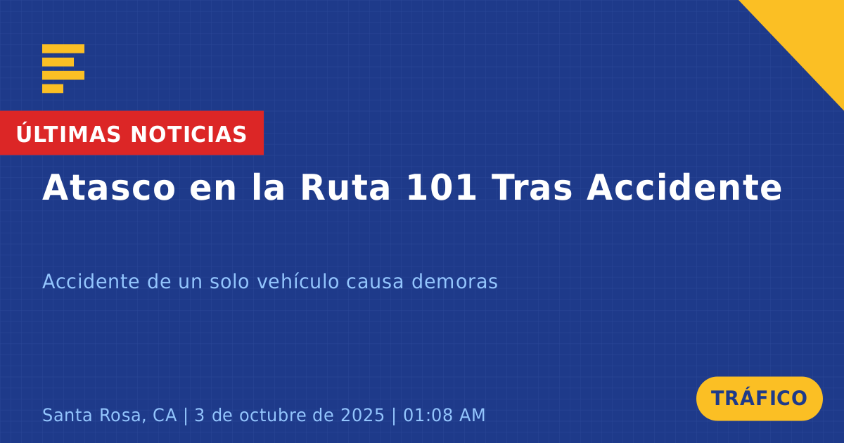 Una colisión de tráfico en la autopista U.S. 101 en dirección norte, a la altura de Todd Road en Santa Rosa, CA, causó interrupciones significativas en el tráfico hoy. El incidente involucró un solo vehículo, un sedán Honda plateado, que fue remolcado del lugar tras el choque. Los equipos de respuesta de emergencia fueron despachados rápidamente para gestionar la situación y facilitar el flujo de tráfico.